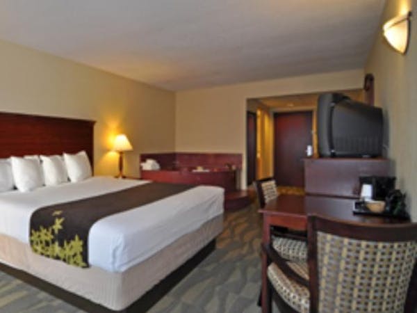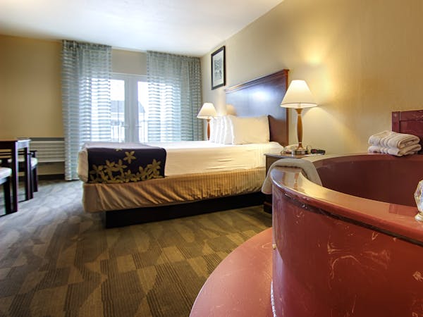 Our non-smoking guest rooms with King Bed and private Whirlpool tub in room are spacious and well-appointed. Most feature French balconies, and all have 37 inch flat-screen TVs, triple sheeting, a refrigerator and microwave and complimentary Wireless Internet.