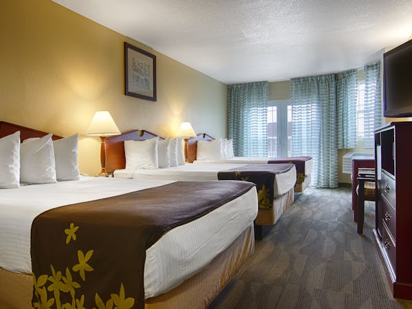 Our non-smoking guest rooms with 3 Double Beds are spacious and well-appointed. Most feature French balconies, and all have 37 inch flat-screen TVs, triple sheeting, a refrigerator and microwave and complimentary Wireless Internet.